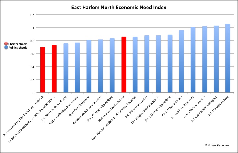 4) You also somehow forgot to mention that according to the New York State Department of Education data East Harlem Scholars Academy has only 46% of its students eligible for free lunch while East Harlem schools as a whole average over 75%. So somehow the school you praise so highly is managing to exclude kids who come from the poorest families.